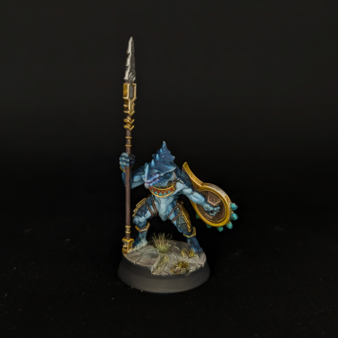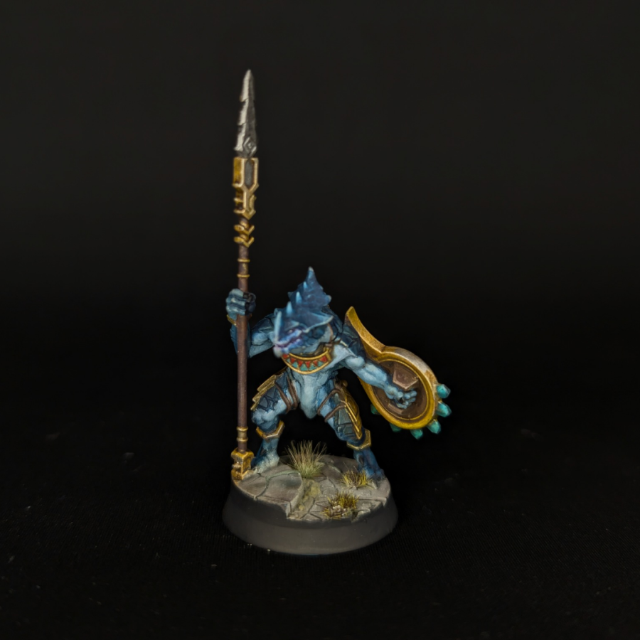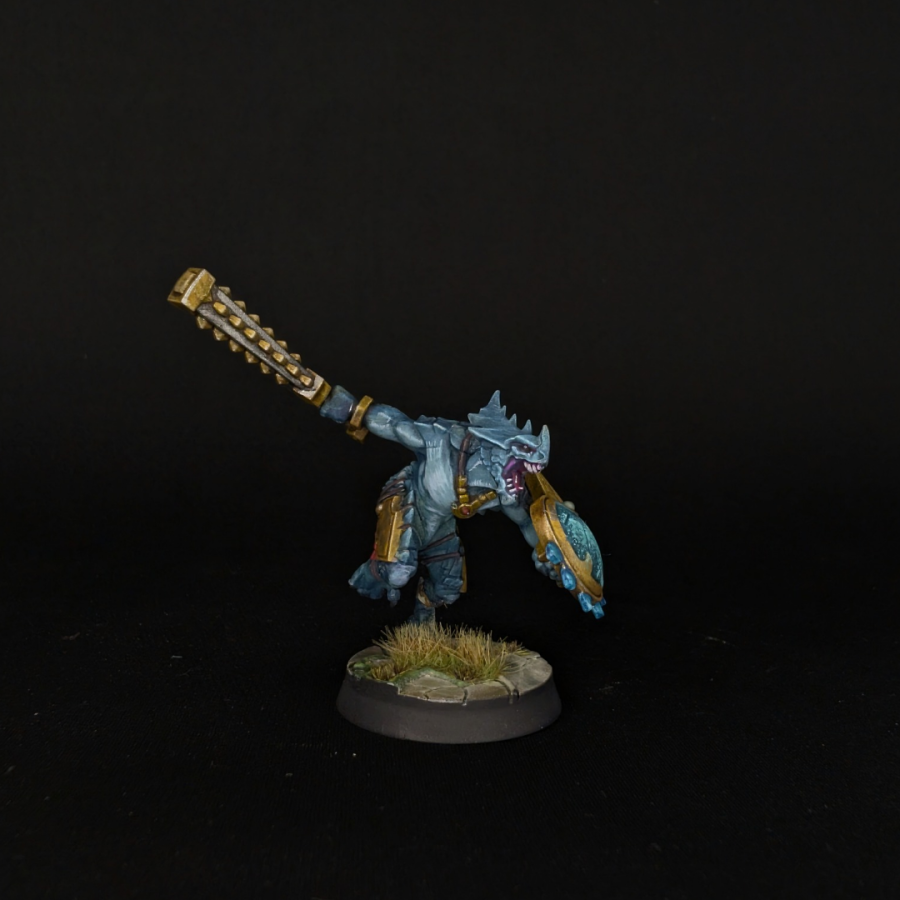 Painting these little cold-blooded killers has been a joy. The Jaws of Itzl are a vivid and dynamic warband, and I leaned into that with bold, eye-catching color schemes. I wanted them to look both primal and otherworldly, so I used a palette of deep jungle greens and luminous blues. It really captures the essence of the Seraphon—ancient and ethereal, but still savage and deadly.
